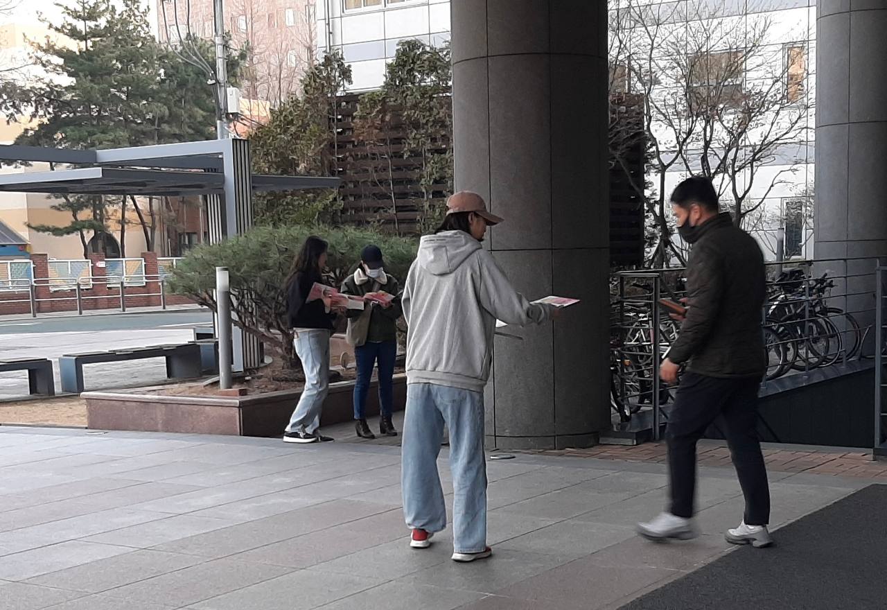 성동구 지역의 콜센터 밀집 지역으로 퇴근시간에 맞추어 흩어져 선전물을 나눠주는 시간을 가졌는데요,
